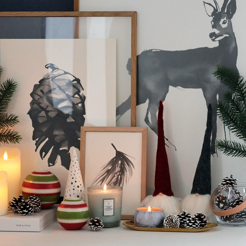 温もりを感じるオークフレームは、キャンドルや小物をたくさん使ったリラックスできる空間にぴったり。木の温かみが感じられるインテリアで、クリスマスシーズンにふさわしい温もりに満ちたコーディネートが完成します。