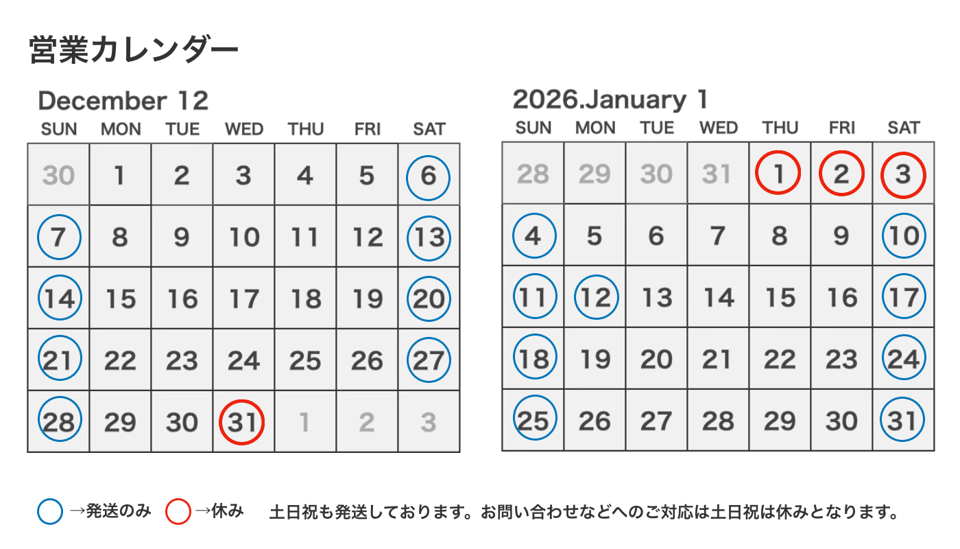 - 12時までのご注文で最短当日発送 ※土日祝日も発送を行っています